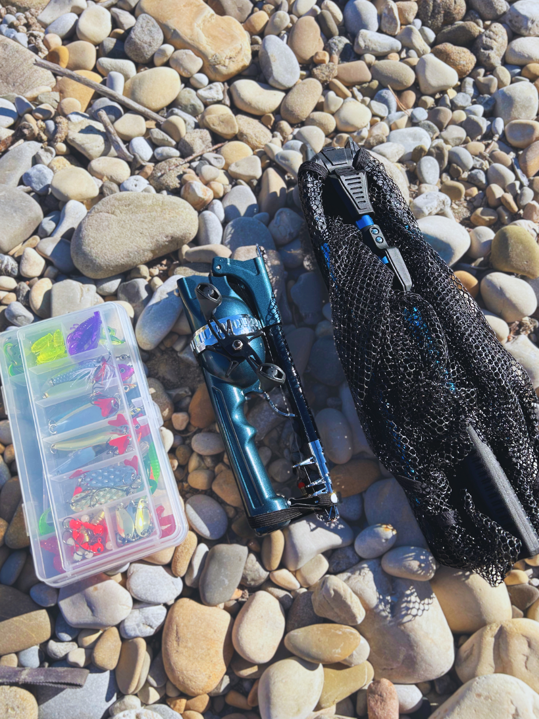 Everything you need to fish anywhere — the foldable rod, net, and compact tackle box in one easy setup.